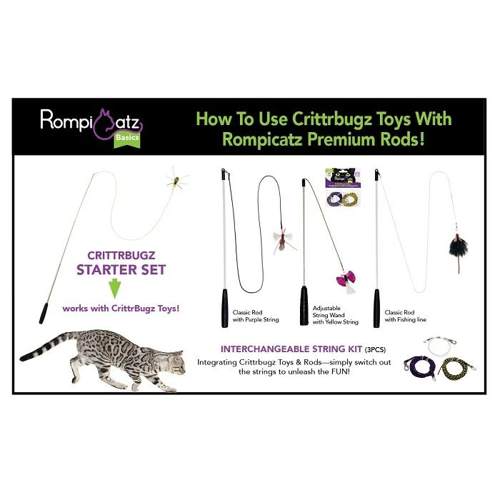 Pet Ki RompiCatz Cat Tease Toy CrittrBugz Interchangeable String Kit 3 pcs